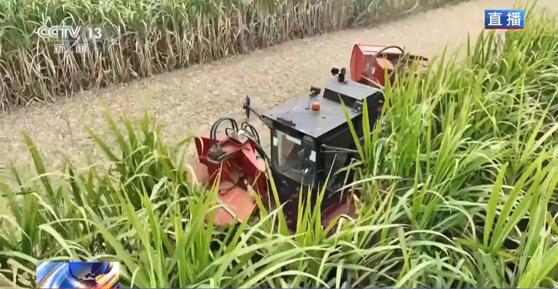 总台记者 邓君洋:我现在位于广西来宾国家现代农业产业园的一处糖料蔗基地。在来宾,联合收割机从2014年开始就使用,比较适用于地形平坦、种植培养面积大的甘蔗基地。